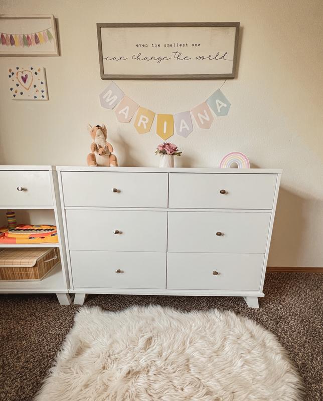 Love the dresser! Lots of room for my daughter as she grows. Looks super modern and also timeless which I love! The knobs are super cute too. It took awhile to put together but it was totally worth it . Very sturdy too.
