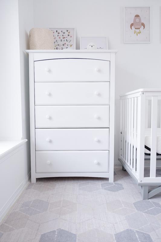 If you are looking for a dresser with more storage for a room that has limited space, get the Kenton 5 drawer dresser. It fits all of my baby’s stuff! I love the quality of the materials and how easy it is to assemble. It looks great in any room.