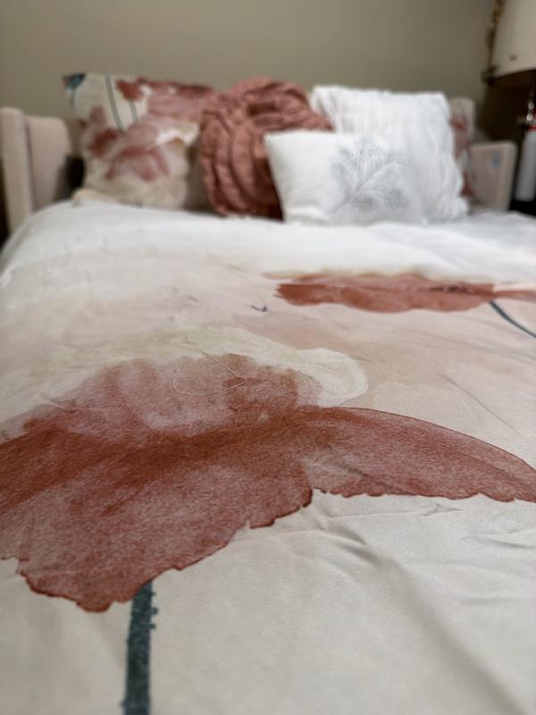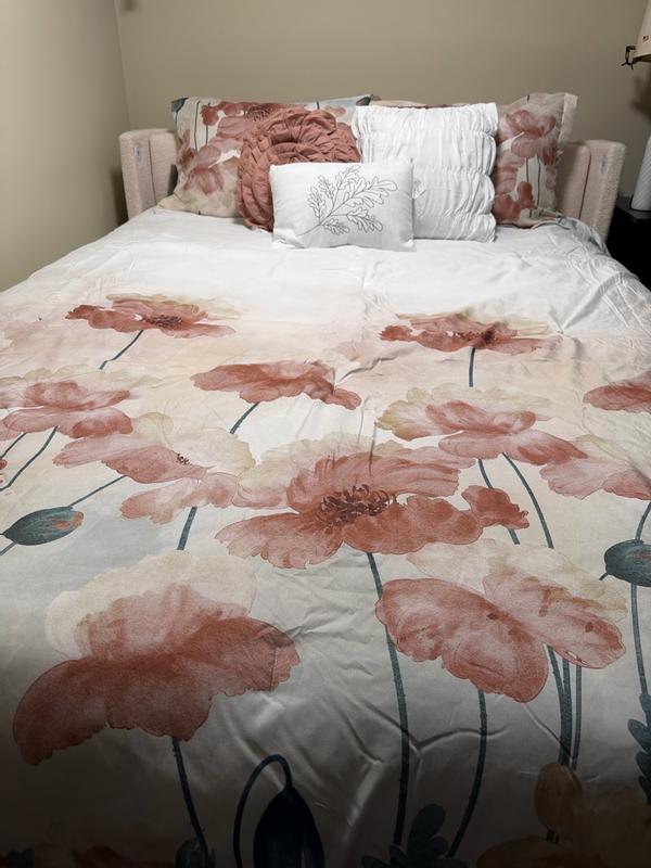 I received this bedding set for free from Influenster in exchange for my review. This comforter set is very pretty and true to color. It came with a comforter, a bedskirt, 2 shams, and 3 decorative pillows. The fabric could be better- it feels very much like polyester. I dont know how well it will hold up in the wash. It would be great for a not-used-very-often guest bedroom, where the appearance is more significant than the feel. I would purchase for that reason, but I probably wouldn't purchase for my master bed.