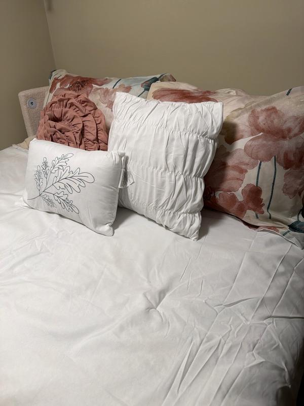 Beautiful 7 piece comforter set came with everything I needed this set is soft, lightweight, and feels SO dreamy. The comforter has enough fluff for cozy nights, but it’s not overly heavy, so it’s perfect year-round The colors are vibrant but soft enough to match multiple decor styles made my room look so beautiful I love it🧡🧡💙💙