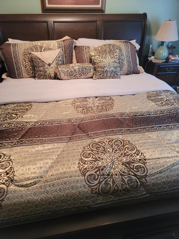 Absolutely stunning! Was pleasantly surprised by the quality. Was expecting a beige & brown comforter set, only to be delighted by a bright Gold & Brown set fit for royalty!!
