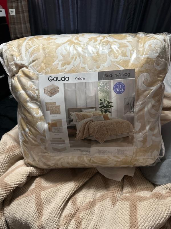 The Nanshing Gauda 11-Piece Comforter Set (Queen) is a stylish and comprehensive bedding solution. It includes a comforter, two standard shams, a bed skirt, and five 3 decorative pillows, offering a complete, coordinated look. The design is modern and elegant, with intricate detailing that adds a luxurious feel to any bedroom. The set is soft and comfortable, though the comforter may be on the lighter side, making it ideal for moderate climates. A great choice for upgrading your bedroom decor with minimal effort! Love the color makes my room look elegant!