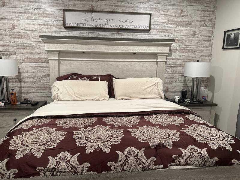 I’ve gone through several comforters, and **none** fit properly over my **King bed with a 3-inch foam topper**—until now! The **Stratford Park Therese Damask 7-Pc. Comforter Set** is a **game-changer**. The **classic damask design** is elegant and timeless, instantly elevating the look of my bedroom. The fabric is **soft yet lightweight**, making it comfortable for all seasons. Plus, it's **machine washable**, which is a huge bonus for easy maintenance. What truly impressed me is the **perfect fit**. Other comforters would barely cover the sides due to my topper, but this one **drapes beautifully** without looking too short or bulky. The **decorative pillows** and shams are the perfect finishing touch, adding a **luxurious, well-coordinated feel** to the set. If you’ve struggled with finding a comforter that **fits well and looks stunning**, this one is absolutely worth it!