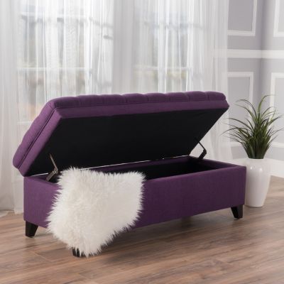 Streamdale Juliana Fabric Storage Ottoman with Birch Legs in Purple (50x20.5x18.3in)