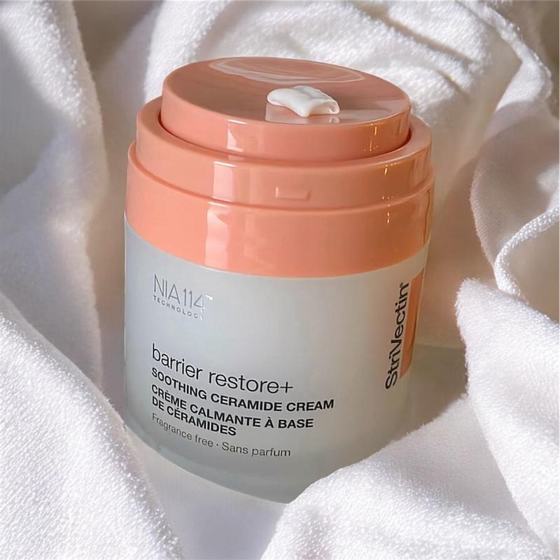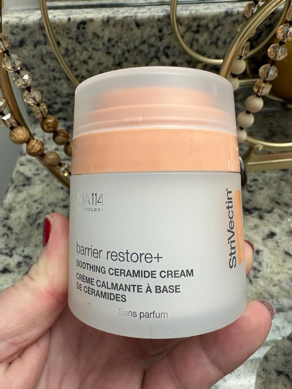 I love the StriVectin barrier restore + Smoothing Ceramide Cream. It is unscented and fantastic for sensitive skin. It contains 3 Barrier-Building Ingredients that help reduce redness and strengthens sensitive skin. This cream seals in moisture and contains probiotic support while diminishing wrinkles. My skin is moisturized and appears well-hydrated with less obvious wrinkles after using this product.