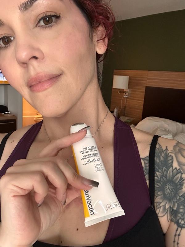 I’ve been using this for a while and Strivectin peptight tightening neck serum roller has helped me so far. I see a difference in my neck and jawline.
