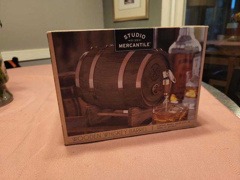 Studio Mercantile Whiskey Barrel 1L was a big hit with my hubby and at our family get together. Was a great conversation starter. It was very easy to setup. Very well built/put together. Had no leakage and held a large amount of beverage. Highly recommend