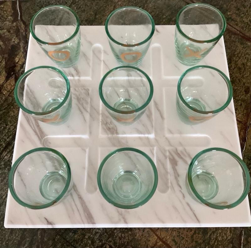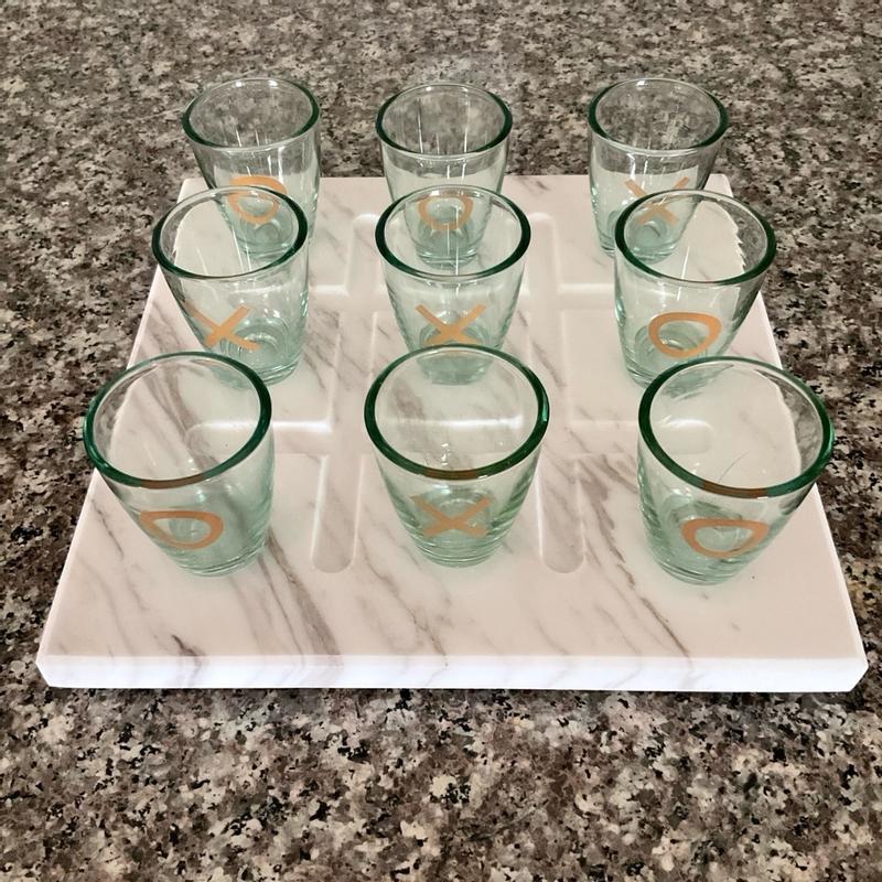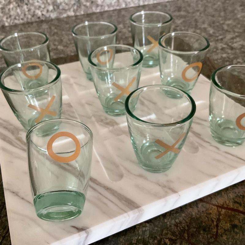 I’ve seen other boards like this for shot glass tic tac toe but none as pretty! This one is super sturdy and the glasses are cute as well. I will definitely bust this out for parties and have it on my coffee table, it really goes along with the rest of my decor! Definitely an upscale-looking version if you don’t want something too boring.