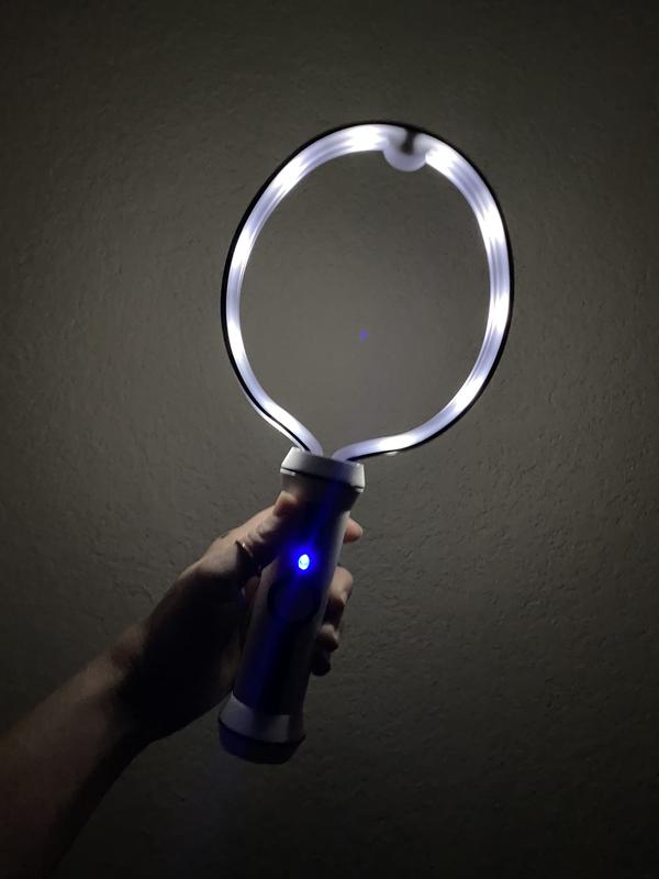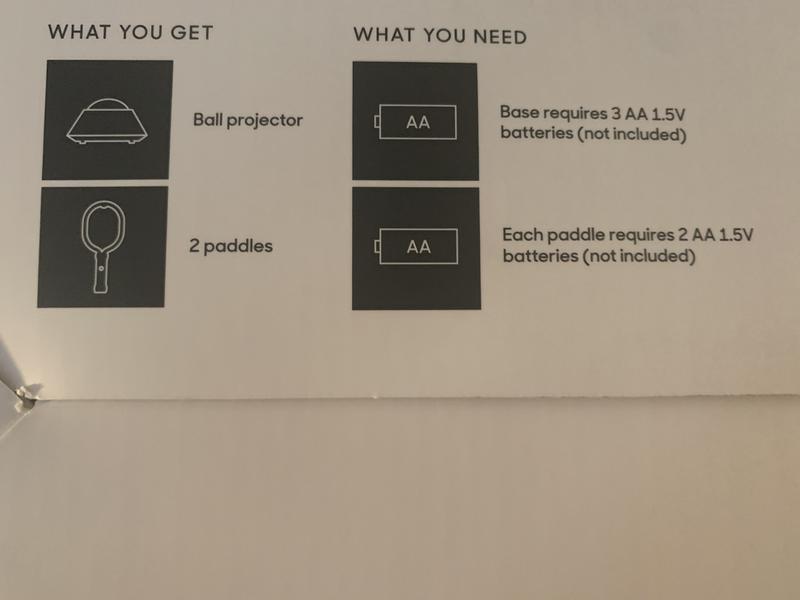 I was excited to try this out as it looked like a cool device. The device took a lot of batteries to get set up - each paddle took batteries, and the projector took batteries as well (7 batteries in total). It was also difficult to open up the battery compartments. Once it was all set up, we read the directions and tried to get it to work but couldn't figure out how to hit the ball. It projected it flat across the ceiling. It was making noises like it was working, but nothing was changing with the ball. All of the lights were off, but we still couldn't get it to work properly. It looked like a cool idea, so I'm disappointed that it didn't work.