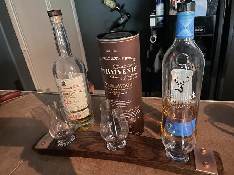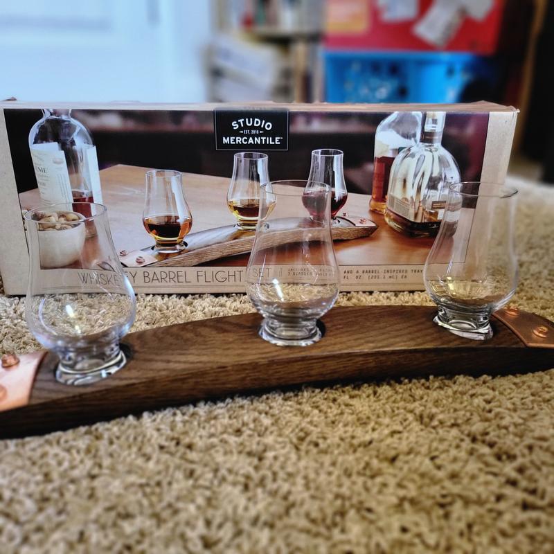 As someone that’s recently wandered into the world of whiskey tasting, I have to say I’m absolutely in love with this flight set! The base that holds the glasses has a lovely weight to it. There is no way it’s going to fall over when it’s empty or fully stocked with every glass containing a pour. And the glasses! They are very cool! I wish the glasses had a thicker brown all, I’m afraid they’re very fragile compared to my daily use whiskey glasses and I’m scared I will break them. All in all I love this set! If you’re into whiskey tasting, it’s definitely worth the buy. If someone you love is into whiskey tasting this would make a fabulous present!