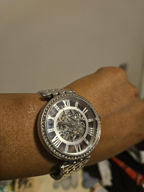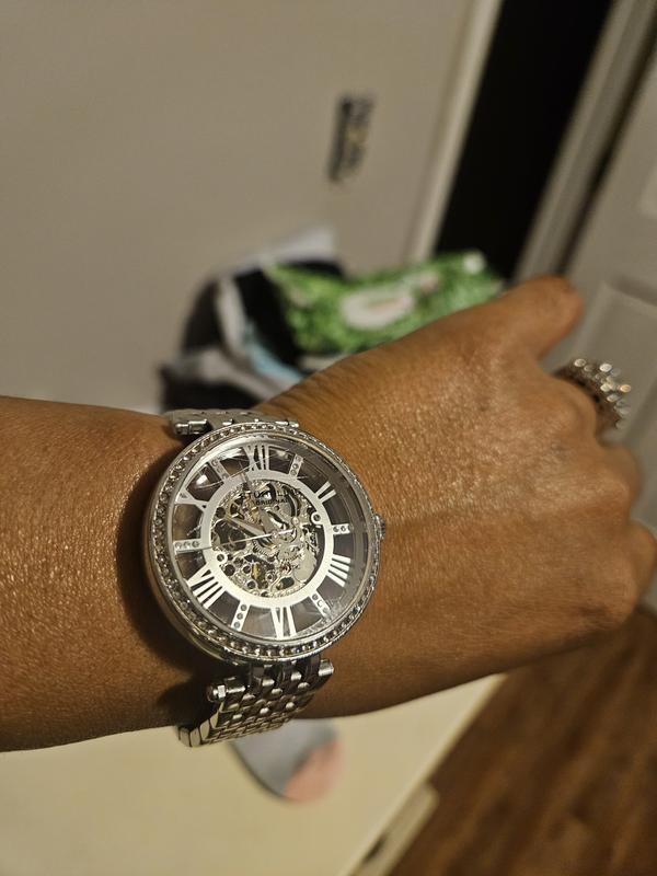 3944 Delphi Women s Automatic Skeleton Watch 38mm, Silver-tone, Crystal Bezel, Roman Numerals, Stainless Steel Bracelet