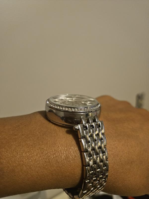 Purchased for myself last year, at a lower price; face scratched too easily, always fast by at least 10-15 minutes, I get lots of compliments, but I can never give anyone the time unless I know around what time it actually is, then I do the math... Bulky watch body sits high off my wrist, would not recommend.