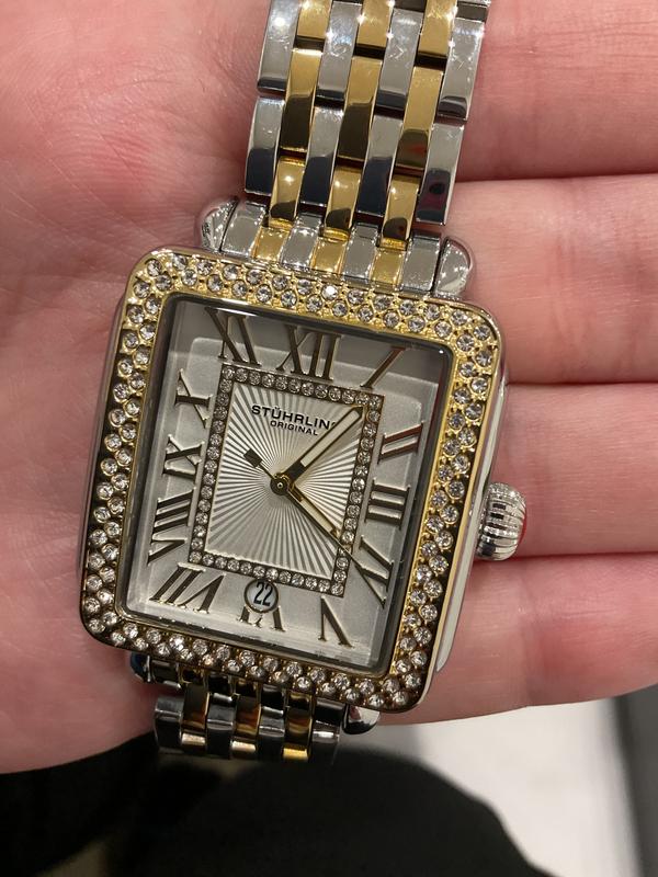 Beautiful watch. Can’t wait to get band adjusted to wear. My favorite watch. Stuhrling makes great watches.
