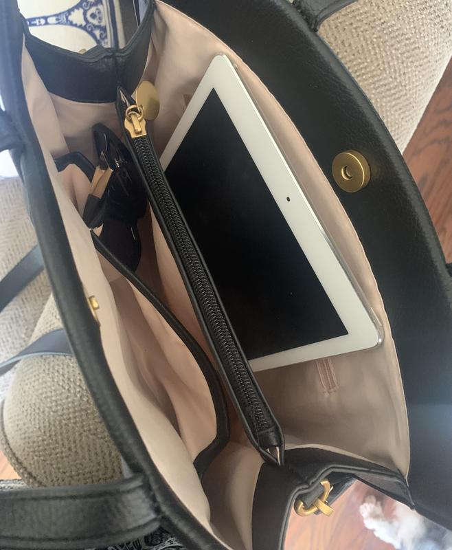 I was looking for a smaller tote for work. Always carrying an extra large bag. They get pretty heavy on my shoulder. So I’d give this one a try. I even ordered a small wallet too. I love it. I can find everything easily in the bag. A light colored lining which I prefer. Very durable and lightweight. I purchased the black.
