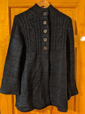 Have one of these sweaters from previous years, easy to throw on with anything for casual days. Got the small, usually a size 4-6, to layer up underneath but an XS would definitely have fit. Like the style of the button up and love the length (covers the bum and doesn't cling to it). Only thing I DONT like about these sweaters is the wide/bell cuffs. Please come out with different colors and some solid colors (navy, green, oatmeal/cream).