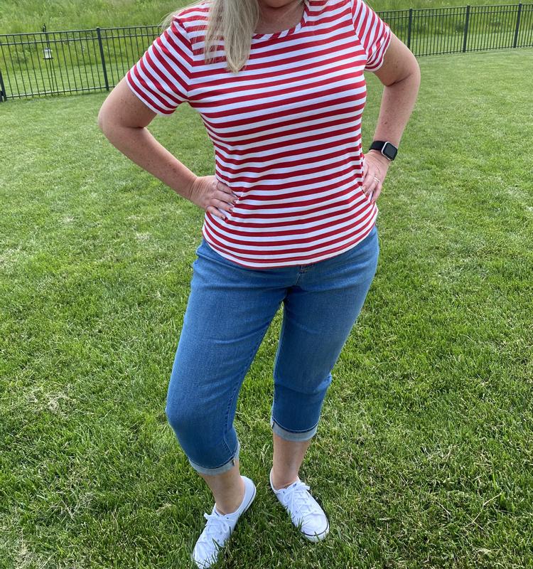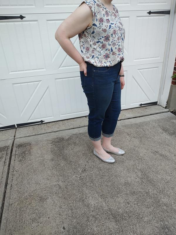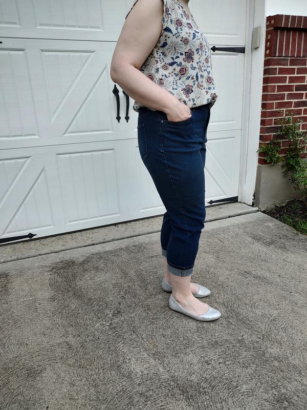 I love these capris. I’m 5’ tall, so uncuffed the pants are ankle length, which is perfect for me. I wear compression socks, so the looser leg is good for helping hide the bumps where the socks end. I bought 3 colors of these!