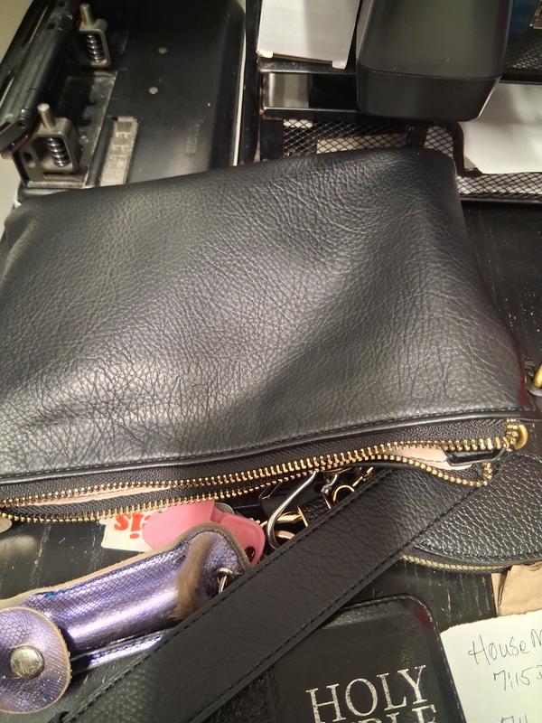 Ilove this little purse, I'll be using it alot.Love the wider strap and Black is always welcome in my wardrobe.
