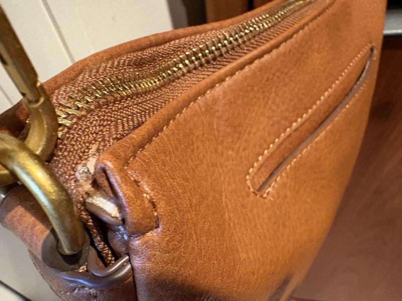 It was slow in receiving, but the look of the purse is appealing. It’s a bit smaller than I hoped, but will still useful. My only disappointment is the zipper attachment. A small section of leather is wider than the rest causing zipper to hang up on that part. But for the price I will work with it.