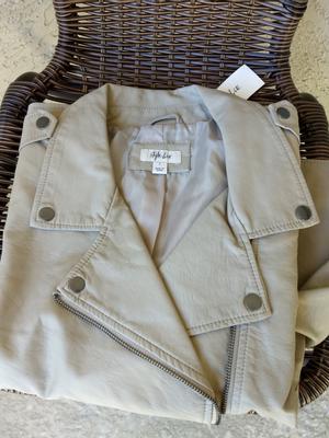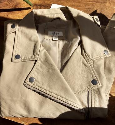 Needs to be offered in Petites as the sleeves were 4" too long. Ordered XL which is my normal size in jackets and the body of the jacket fit fine but I am 5' 1" and the sleeves were a disaster. The other major thing I did not like was (unlike the model showing it open) when open it stuck out at the back and the front. In other words, it did not look good left open probably due to the side zipper. I purchased 2 of the same style jackets last year but they have a middle zipper and look great open or closed. I failed to notice the side zipper on this jacket when ordering. Also, when you sit down with the jacket closed...there is a big bulge in the front...looks awful! This jacket also would be better without the shoulder lapels which adds too much bulk. The faux leather looked like the real thing and is a little shinier and a heavier feel than shown on line. This one unfortunately is going back which is a pity because it was a great price on sale.