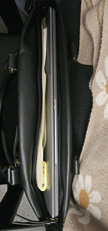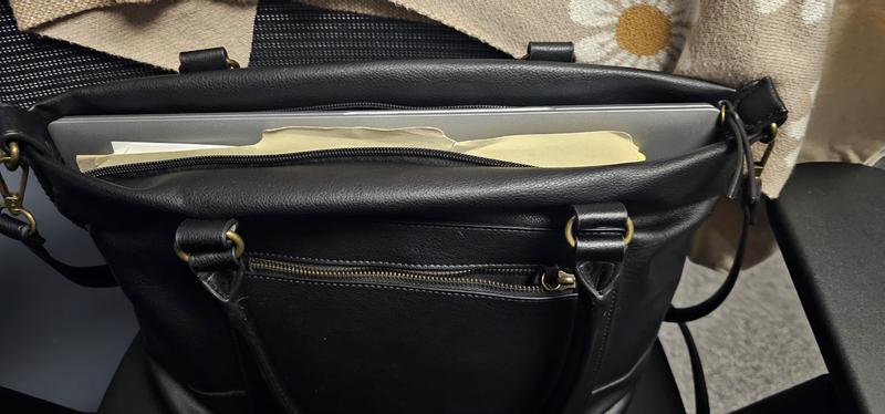 I wanted to love this bag because I needed one for my job, but I had to literally squeeze my 14inch dell laptop to make it fit since I had gotten rid of my old bag. It barely fit 2 manila folders and the shoulder strap was too long. I'm 5'2 and the purse came down to my knees on the last hole. Couldn't return it and had to resale it for less than half of what I paid.