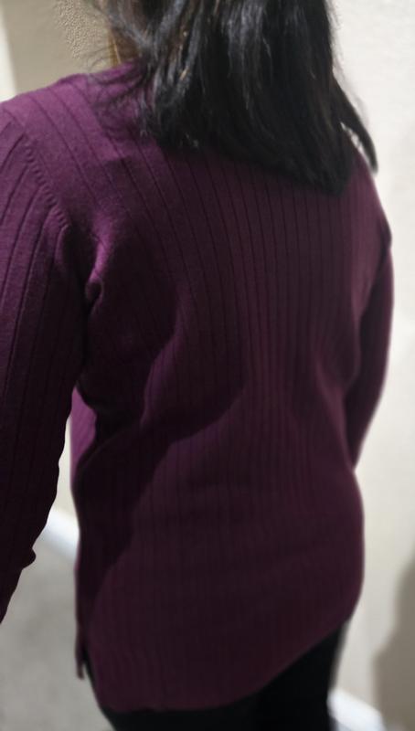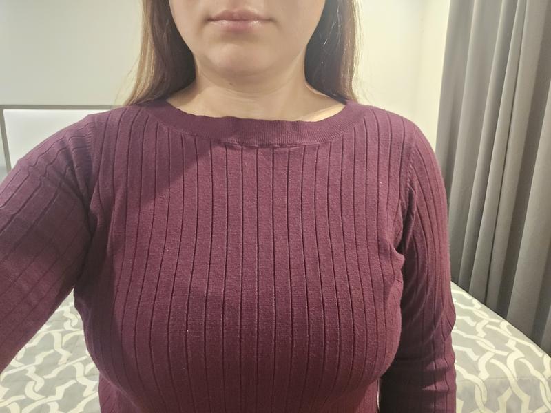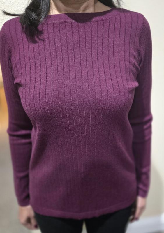 A casual sweater that nicely fits on a petite frame. The Berry color is perfect for the fall season, when its cool but not too cold. I'll make use of it for work days and casual evening meet ups, it feels soft and light, so will go good when wearing layers this winter.