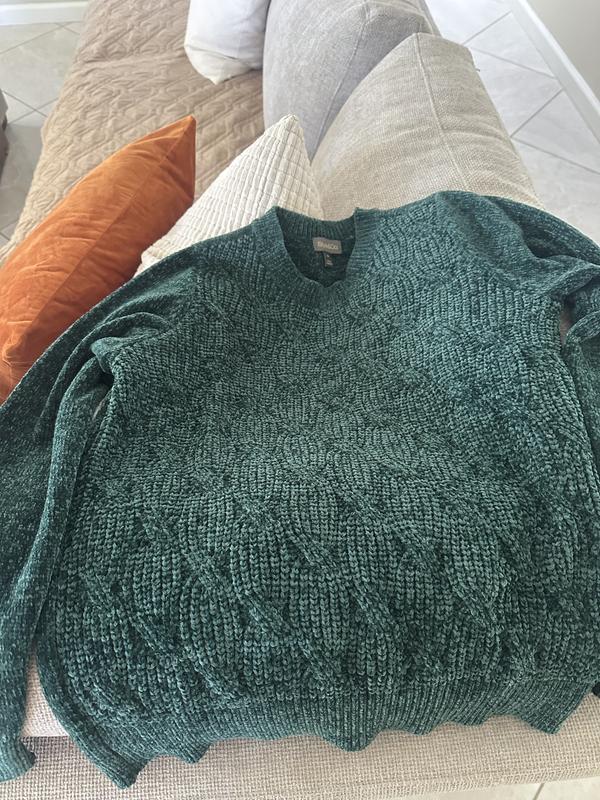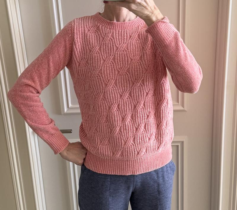 Soft, warm, and surprisingly stylish, this chenille cable crew sweater delivers both comfort and polish. The chenille fabric feels plush and cozy without being bulky, and the classic cable-knit pattern adds nice texture and structure. It holds its shape well after washing and pairs easily with jeans or slacks. A great staple for cooler weather.