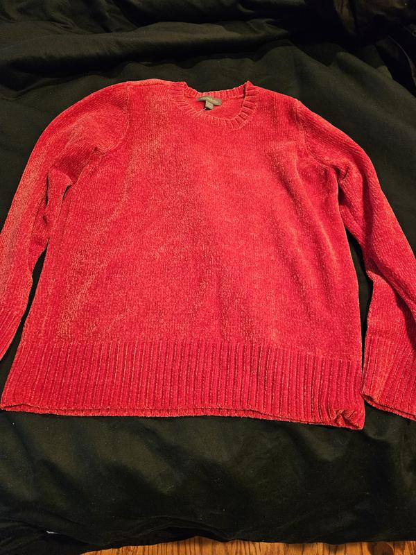 This sweater is soft and plush and has a rich color (I purchased the red) and it matches beautifully with skirt I purchased from Macy's (the skirt featured with the sweater).