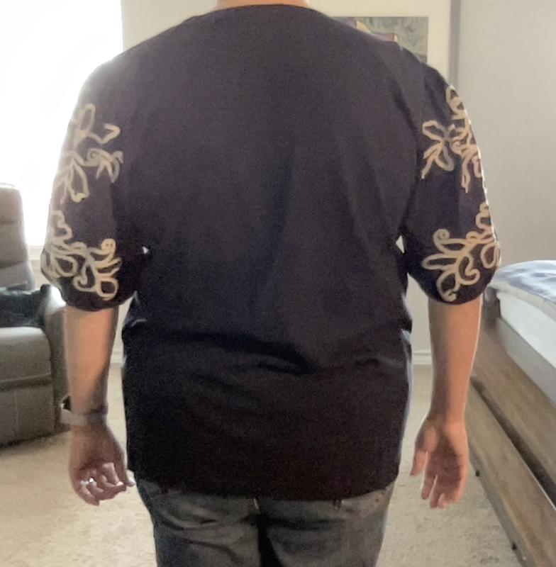 Being 100% cotton, the fabric feels high-quality and breathable, and as someone on the petite side, I was thrilled to find something that actually hits at the right length. The embroidery on the sleeves is a lovely touch. However, there are 2 things to keep in mind. First, the embroidery isn't a crisp, bright white; it’s a bit more of a muted, off-white tone. It still looks nice, but it wasn’t quite the "pop" I expected from the photos. Second, and more importantly, the elbow-elastic is a bit restrictive. It’s a beautiful piece, but if you have slightly fuller elbow you might find the sleeves a bit snug.