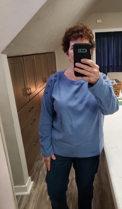 I love this top! The fabric is soft and color saturated. The petite fit is good. I am 5'1" and the length is spot on. The arms are a little long but they can be hemmed easily. I am very happy with this top.