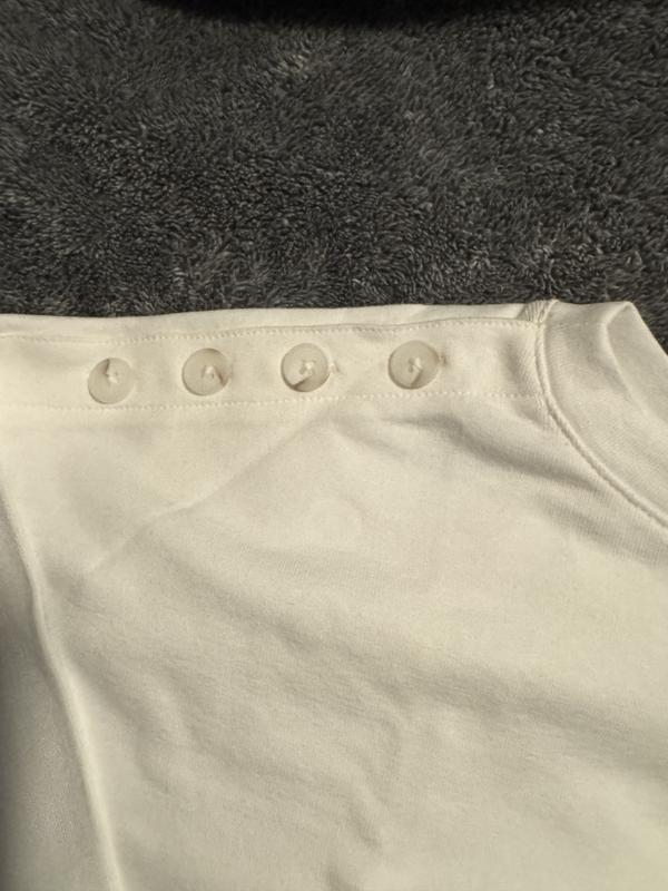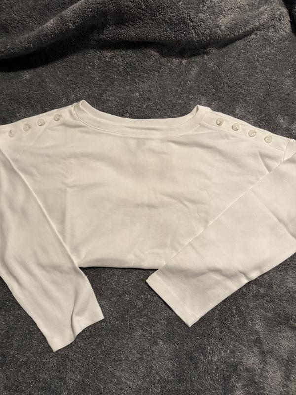 I really like this shirt, it’s a nice bright white and a great weight for the fall and winter , it’s thick enough not to be see through. The button details are a nice elevated touch and it washed nicely I hung to try so not sure how it would do in the dryer, it runs true to size.