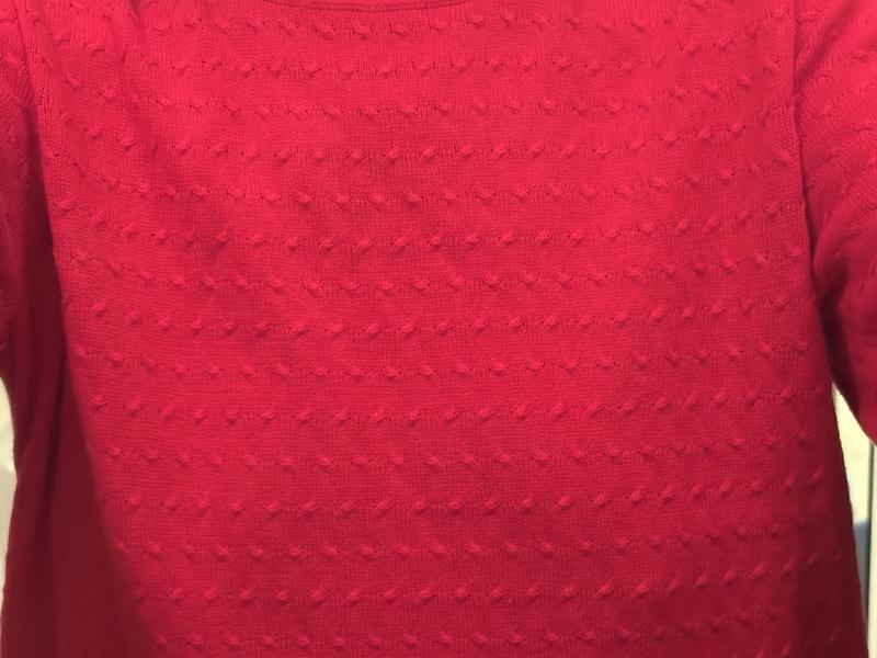 This is a lightweight, textured sweater that will be perfect for fall and winter in the South. It fits perfectly even after laundering. I purchased the red one and the color is great-bright red. Very pleased.