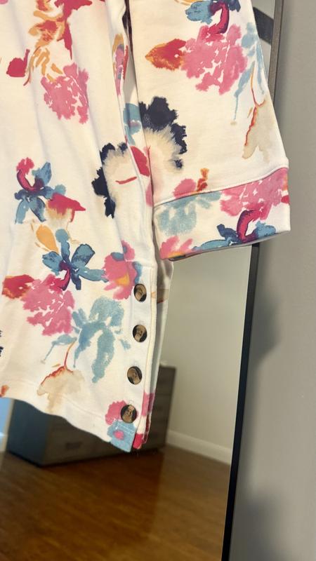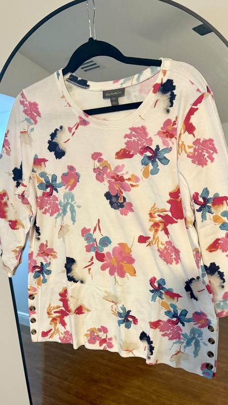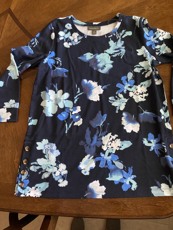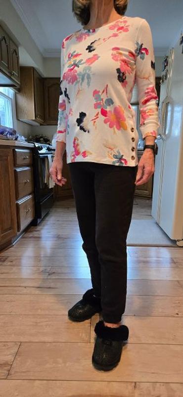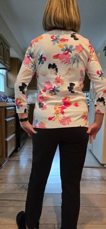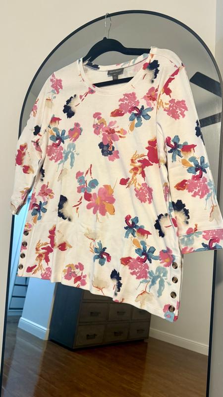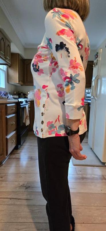 I received the Easy Crewneck Button Tunic Knit Top – Floral Essence for my mom and she liked it. It is soft and comfortable for everyday wear without feeling too dressy. Nice floral design and bright colors. The bottoms add a nice little detail without being too much for everyday or evening wear. The fit is relaxed but not boxy. Overall, it’s a versatile, easy top that works well for casual days.