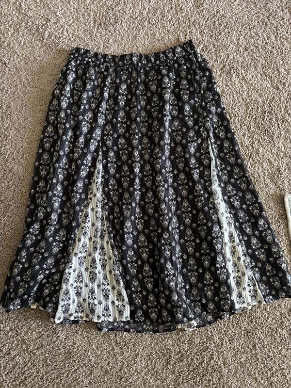 Love this flowey skirt. It is a great addition to my wardrobe. I am going to wear it in the winter with boots and a leather black blazer. In the summer I can wear it with a sleeveless top. I can wear it to the office or out to dinner. This is an all year round piece. Love the length and the fit. Highly recommend!