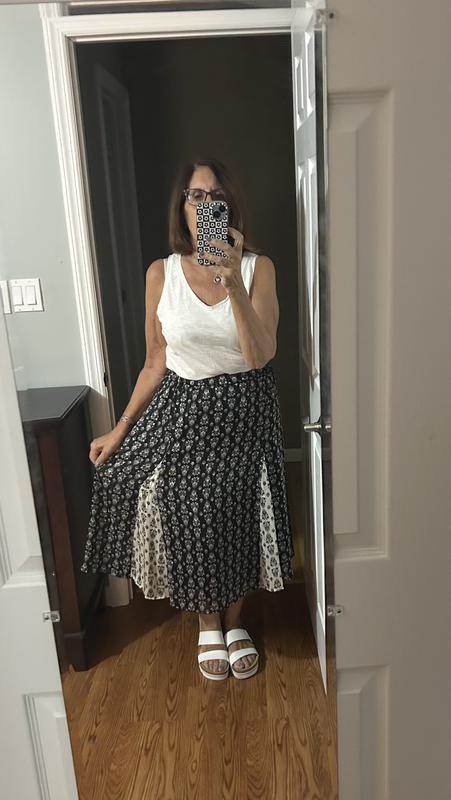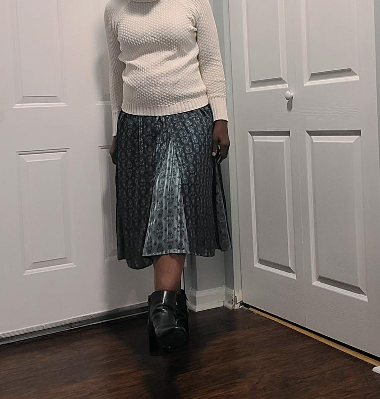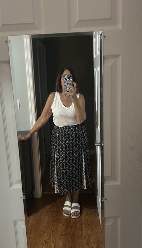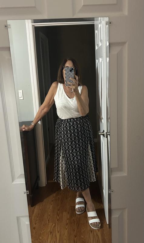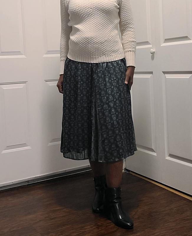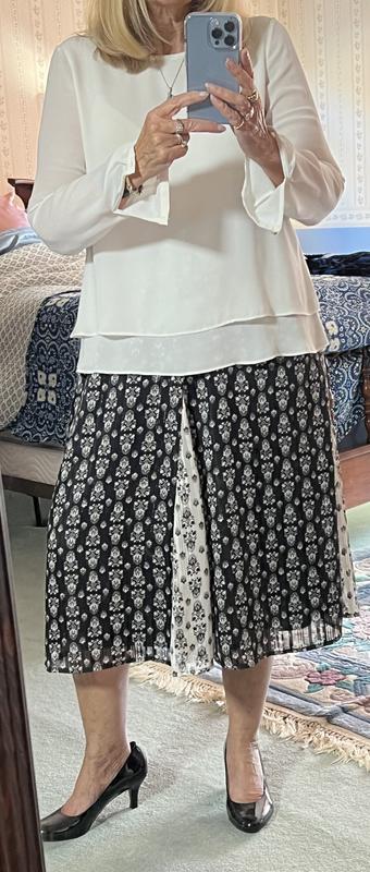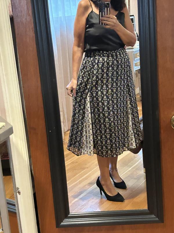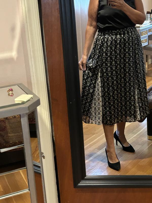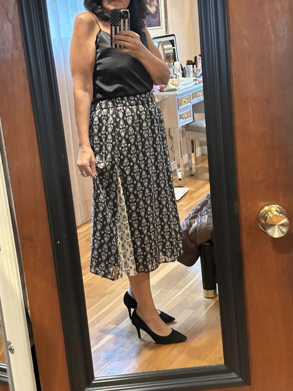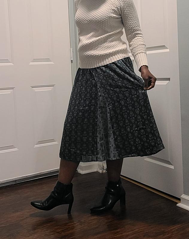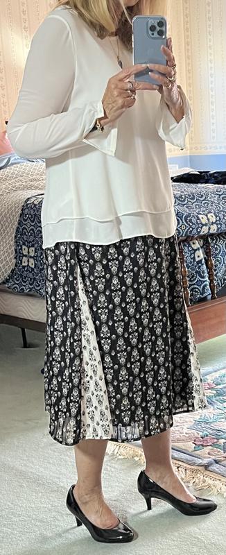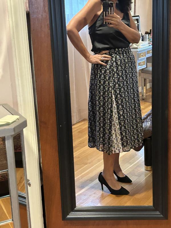 Love this flowey skirt. It is a great addition to my wardrobe. I am going to wear it in the winter with boots and a leather black blazer. In the summer I can wear it with a sleeveless top. I can wear it to the office or out to dinner. This is an all year round piece. Love the length and the fit. Highly recommend!
