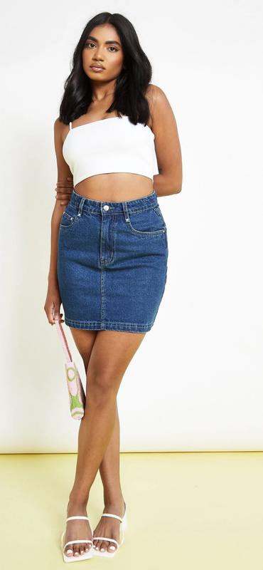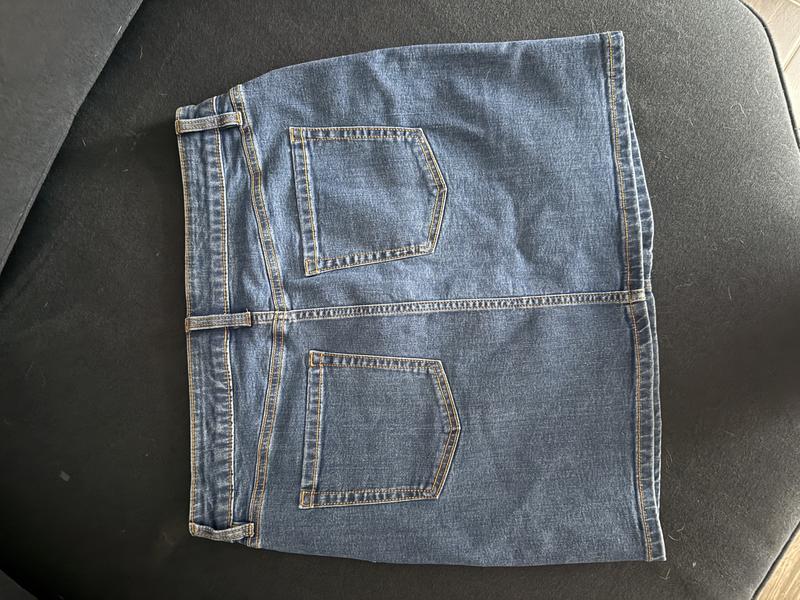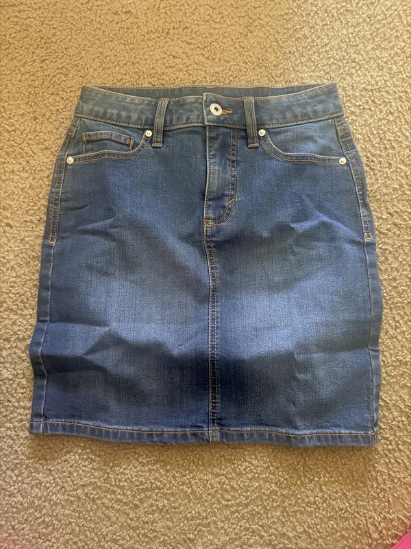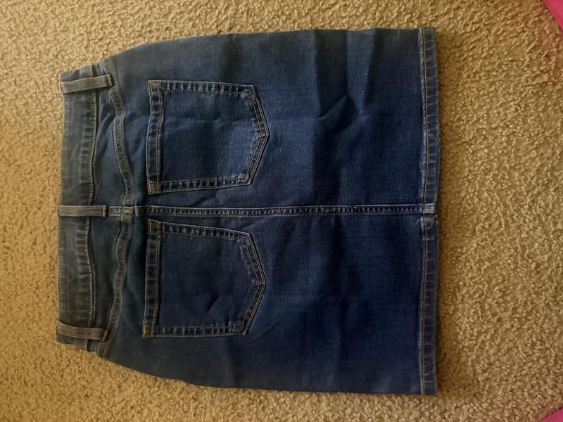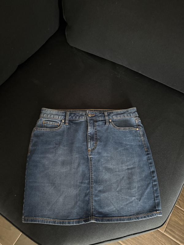 Denim Skirt material comfortable fit/ pairs well with leggings or boots. Size chart is accurate.Perfect fitting not tight fitting & not too short. Recieve lots of compliments. Wore to a football game.