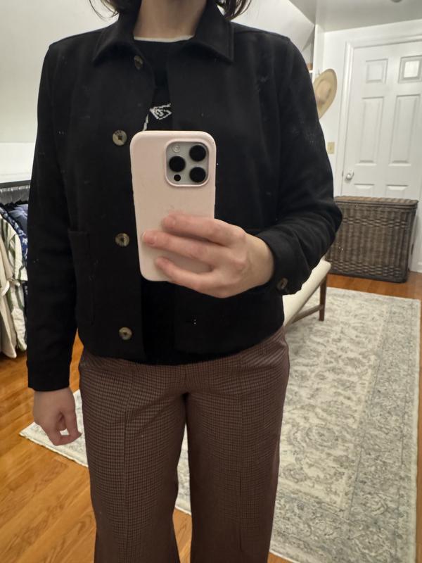 This is a really cute jacket that will go with so much in my wardrobe. And at the sale price it really can't be beat. The cut is very flattering. I'm 5'3" and short waisted hourglass figure, the Petite M fits me well though it only leaves enough room for a shirt underneath, not a sweater. That said, the fabric is warm and cozy and I plan on using it as blazer-substitute in milder fall weather and would put a winter coat or jacket over it for colder days.