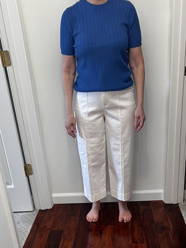 I love the blue color of this sweater. This is perfect to wear with jeans and or shorts for spring/summer. It is lightweight and super soft. I am wearing a size PS and for reference I am 5'3 132 lbs.