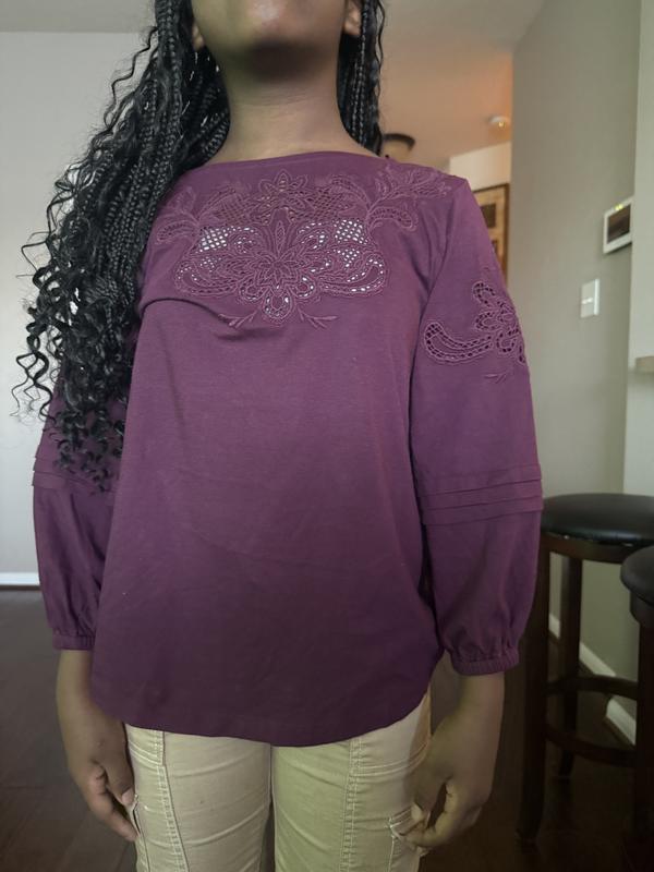 Petite Lace-Inset Knit Boat-Neck Blouse, Macy's Exclusive