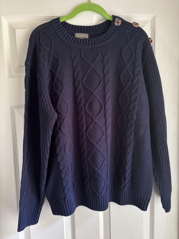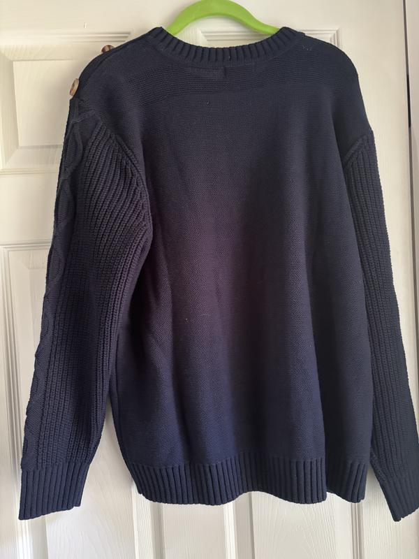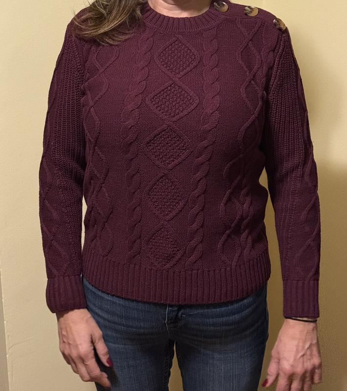 The color is a rich, deep navy that looks even better in person and classic enough for work, but easy to pair with jeans for a more relaxed outfit. The cable-knit pattern feels timeless, and the stitching is tight and high-quality. The sweater has a nice weight to it, warm without feeling bulky