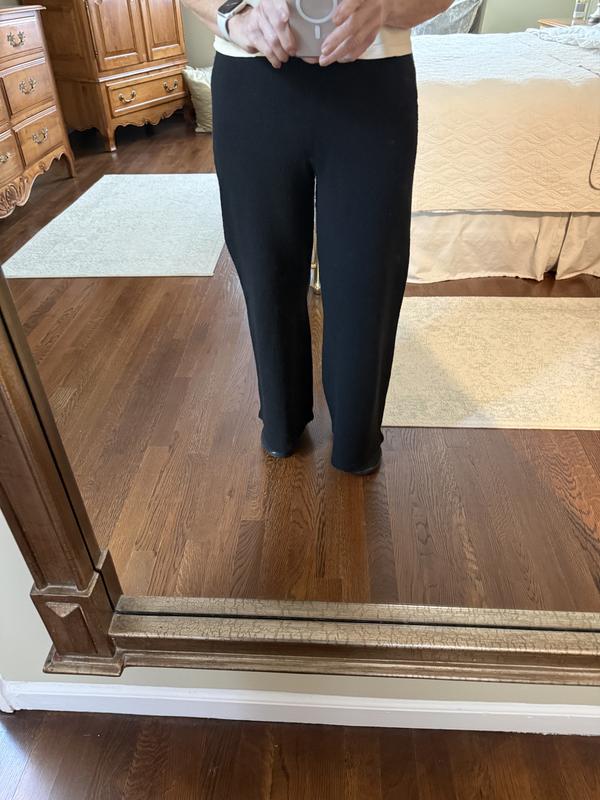 These sweater pants are Soft,Comfortable and look great !! They are the best, Just Love wearing them. I am 5’4and 135 pounds, ordered petite medium still kind of long for me,Could have sized down due to stretch of fabric.