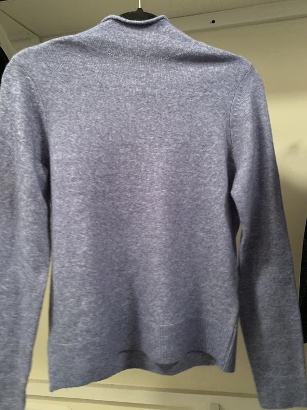 I got 3 of these. Pro: the cashmere is better than the crewnecks. Con: It's not a true mock neck - it's a kinda rolled extension of the sweater and sits at the lowest part of the neck. Also, I got Petite Medium, my usual, but the arms and torso are really long. Awkward fit; can't imagine how the regular sizes fit. I'm keeping them to give as gifts to my regular-sized pals.