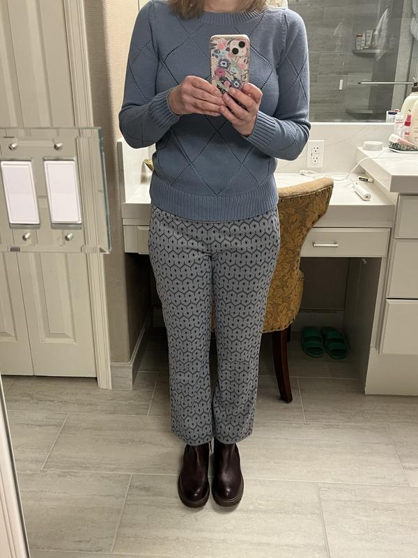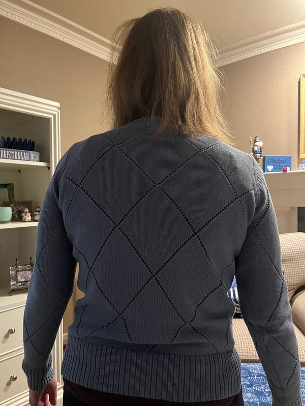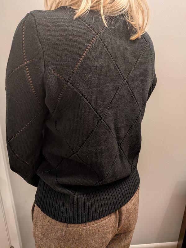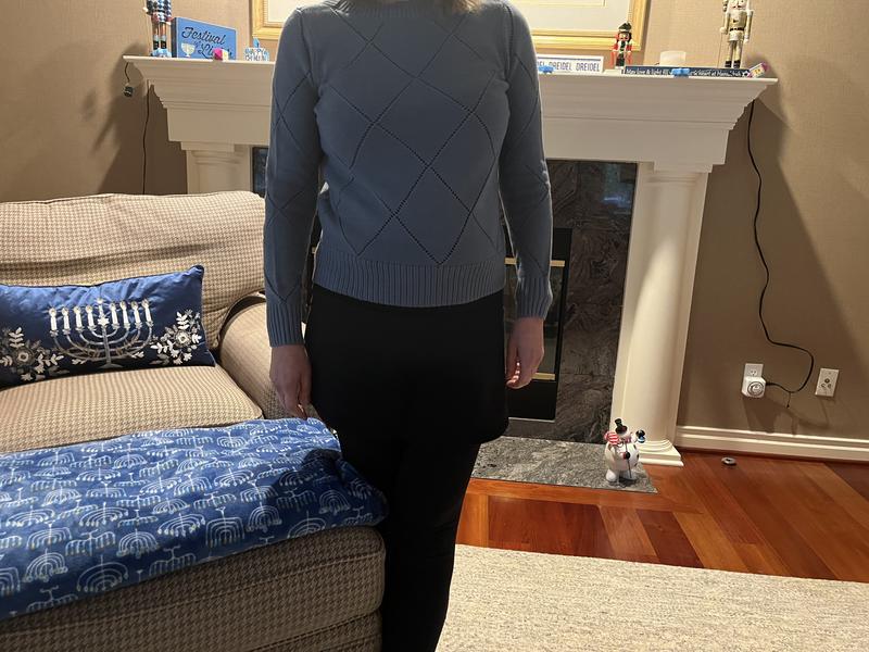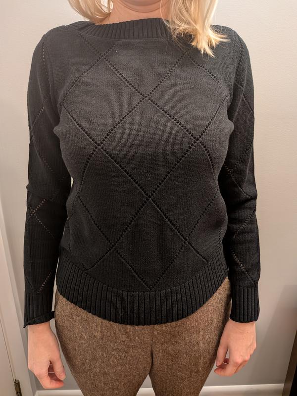 This boat neck pointelle sweater is absolutely stunning! The grey shade is the perfect neutral, and the delicate knit pattern lace- like detailing adds such a pretty, feminine touch without being overly sheer.It’s lightweight, flattering, and well made. The material is soft and lightweight, making it ideal for year-round layering. It's the perfect piece for dressing up or keeping it casual. It's true to size and in perfect length. I truly will recommend this sweater.