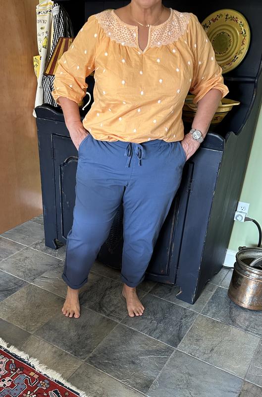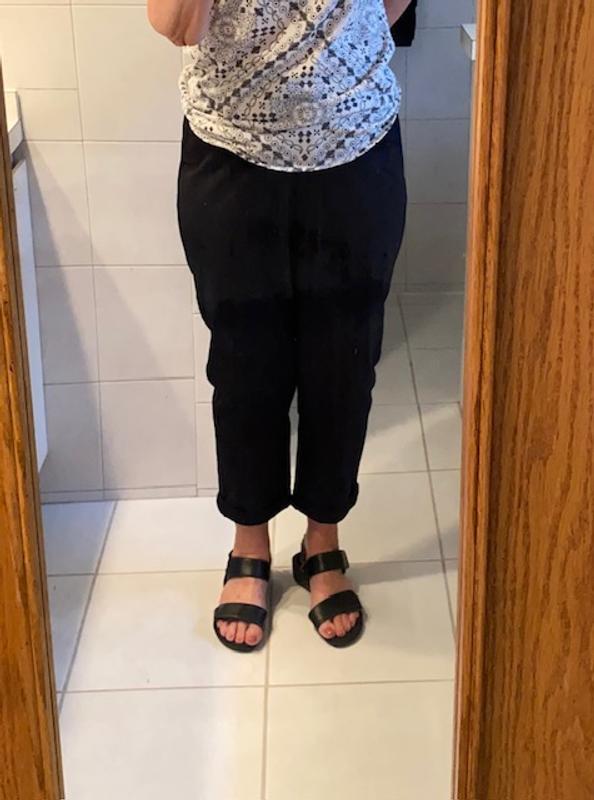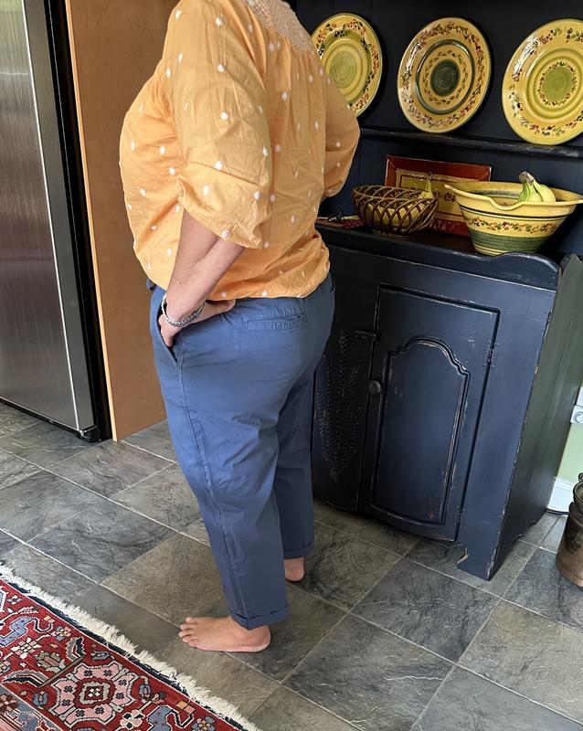 Hard to iron. Legs were hard to get straight in order to iron. Might have been cut on the bias. Also, difficult to iron around pockets and waist line. I kept them anyway.