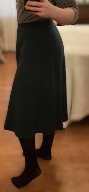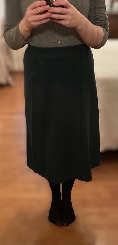This sweater skirt is perfect for fall/winter. Not only can I wear it to work but also out and about or to an event. It’s incredibly soft and comfortable but looks nice. It also has a nice weight to it keep you warm. This skirt is pure quality. The length is great and falls right below the knees. Pairs perfect with flats, heels, or even tall boots. This is a must have staple for the holiday season. I absolutely love the alpine color.