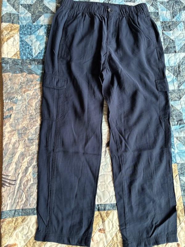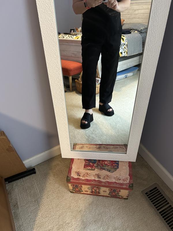 Great pair of pants! Perfect length for my 5’3” frame. Not too tight, or loose. Dress up or down.