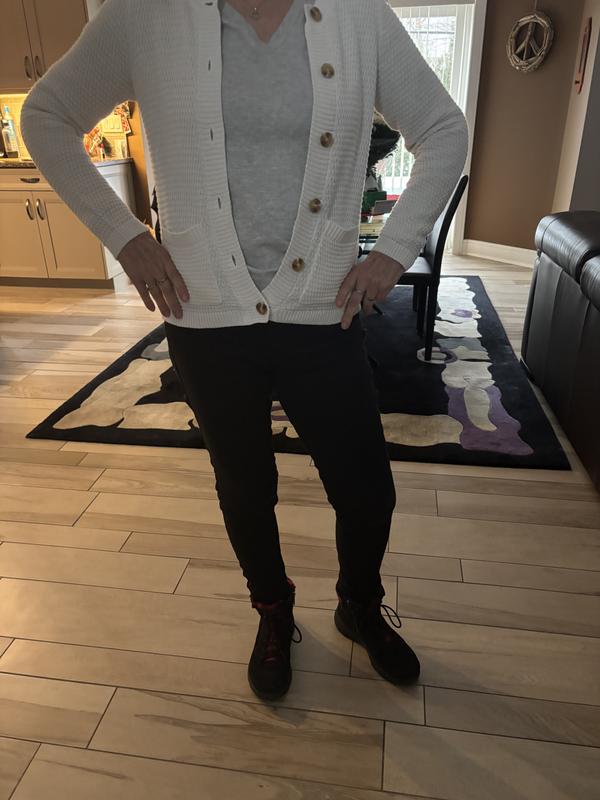 This sweater is a beautiful color and a sweet style. It’s great for working in an office or to wear over a sleeveless dress. I like the large buttons and the pockets. You can’t go wrong with this purchase!!