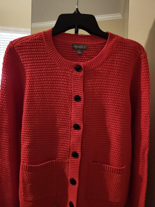Style & CoPetite Textured Stitch Crewneck Cardigan, Macy's Exclusive