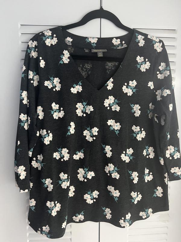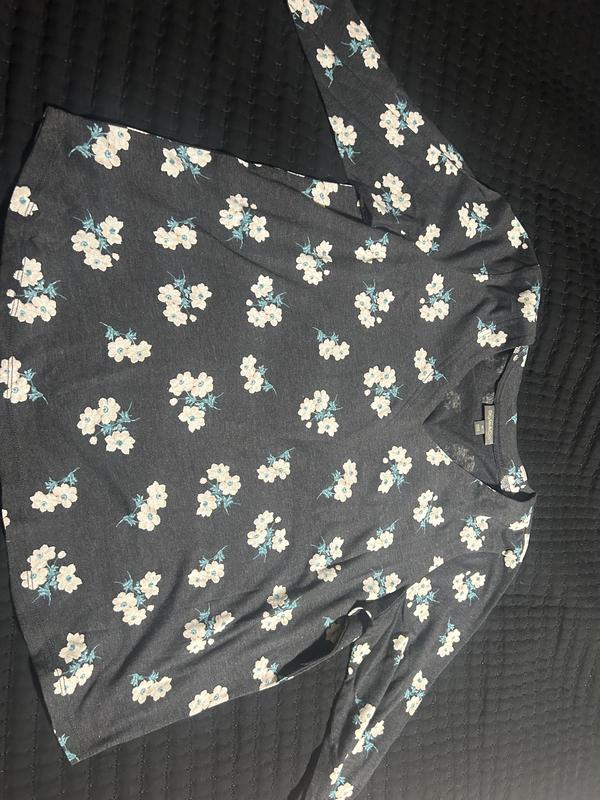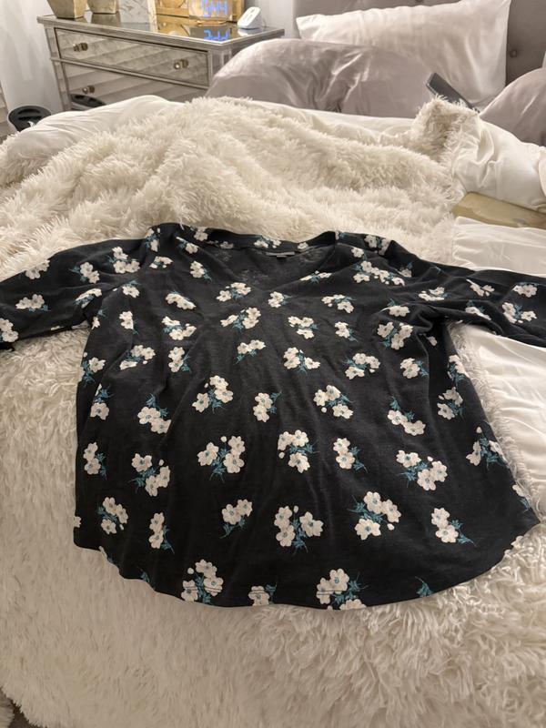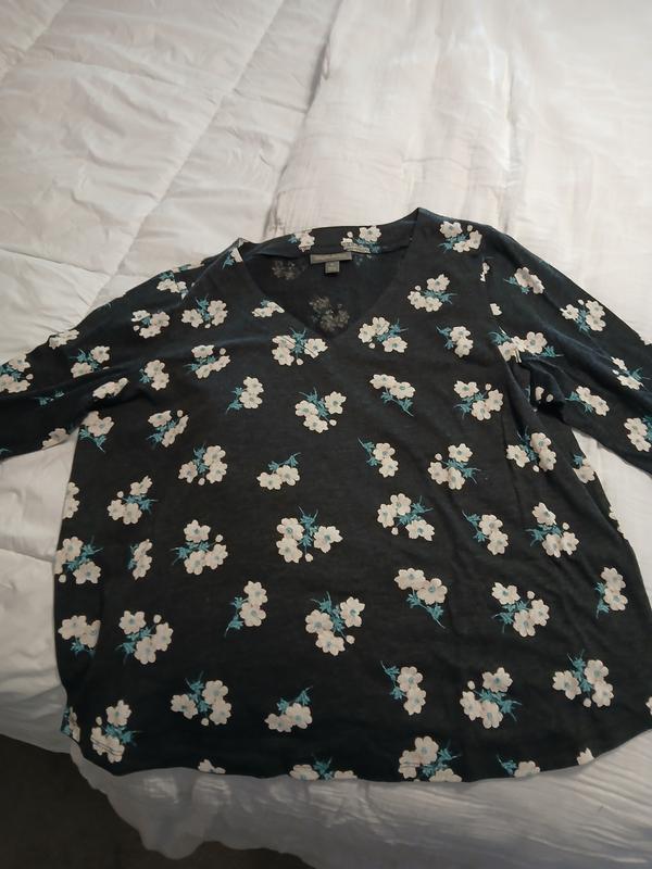 Cute and soft T-shirt with V neckline. It’s more flattering than your usual T-shirt but with the same softness of and comfort of a classic shirt. Can be worn with jeans or shorts and I like that it has long sleeves to protect from hot summer sun but still lightweight. The flower pattern is cute too.