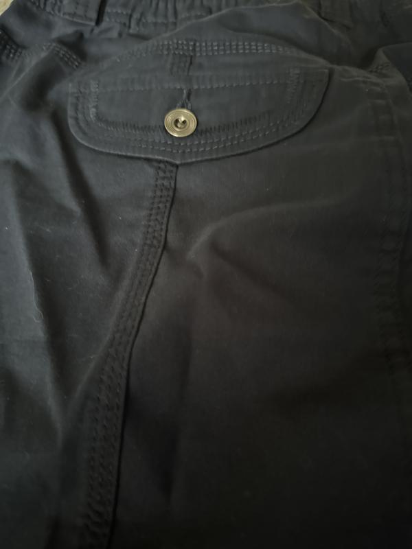 Cute mini skirt. Material is great, it doesn’t wrinkle easily. Button and zip closure make it was to put on and take off. It has deep pockets for your phone or keys or even a little wallet. It has cute faux button pockets on the side of the skirt and in the back. It also has belt loops so you can change up the look of the skirt with a fancy belt. The skirt is a little short for me. It’s great for the younger ladies. It is a comfortable skirt overall.