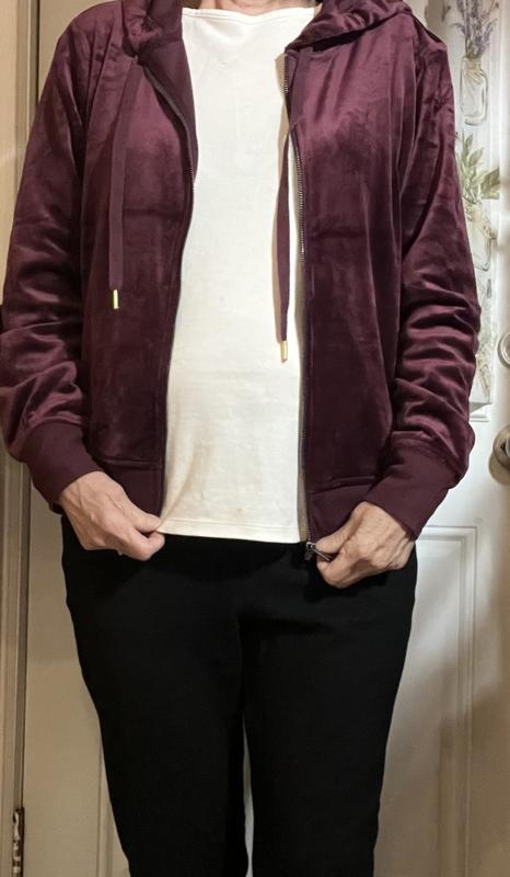 I like the hoodie. I do not usually wear hoodies but am begining to embrace themto protect against the wind. I have worn it twice. It works alone and is comfortable under a coat. The velour is soft and the color is rich. I gave it 4 stars because I have not cleaned it yet.